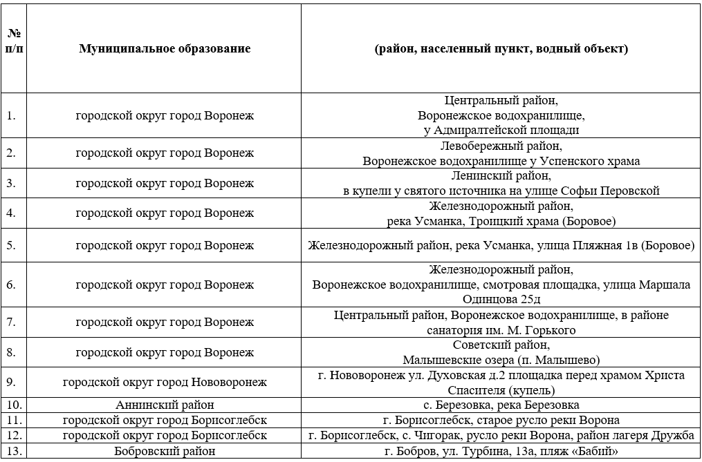 Названы места крещенских купаний, которые будут организованы на территории Воронежской области. Список адресов опубликовали представители ГУ МЧС России по региону.