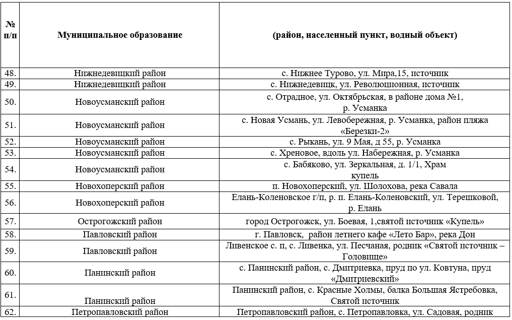 Опубликован список мест для крещенских купаний в Воронежской области