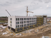 В данный момент объект готов уже на 24%. Уже возведен первый блок школы – там сейчас проводятся фасадные работы, а также обустраиваются инженерные сети (отопление, водопровод, канализация, вентиляция). В активной стадии строительства находятся второй и третий блоки школы. Там разместятся спортзал и столовая. Наконец, почти готова котельная, где ведется монтаж труб.