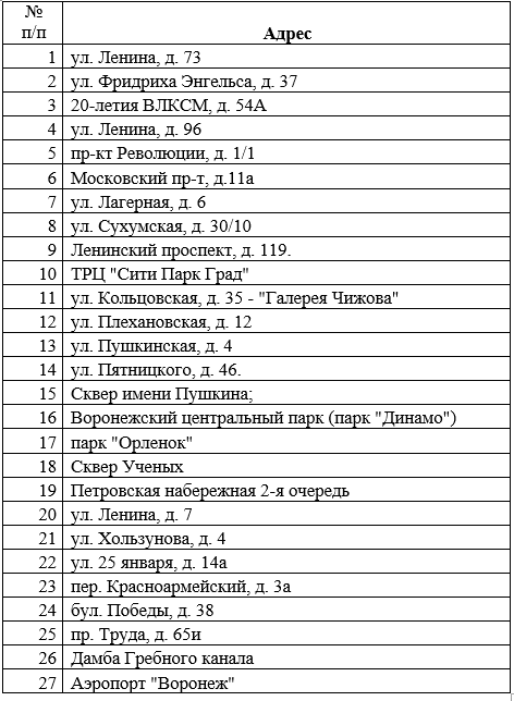 Региональное правительство со ссылкой на министерство тарифного регулирования и операторов связи поделилось адресами общедоступного Wi-Fi на территории Воронежа.