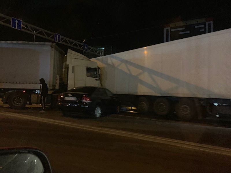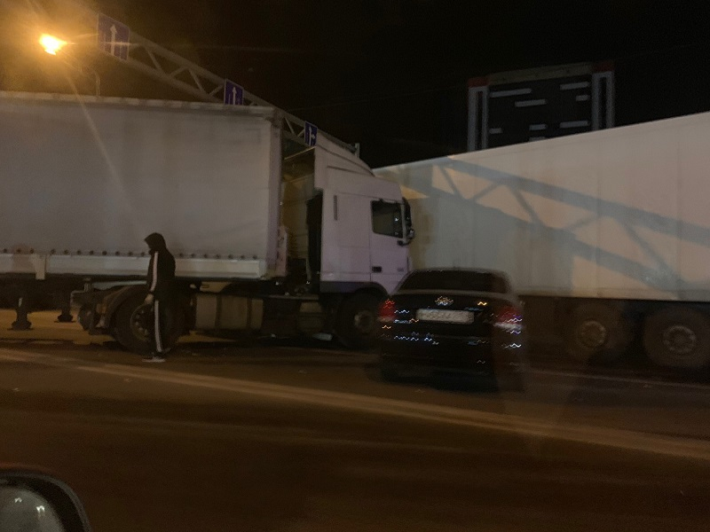 Опубликованы снимки ДТП с двумя фурами, перекрывшими окружную дорогу в Воронеже