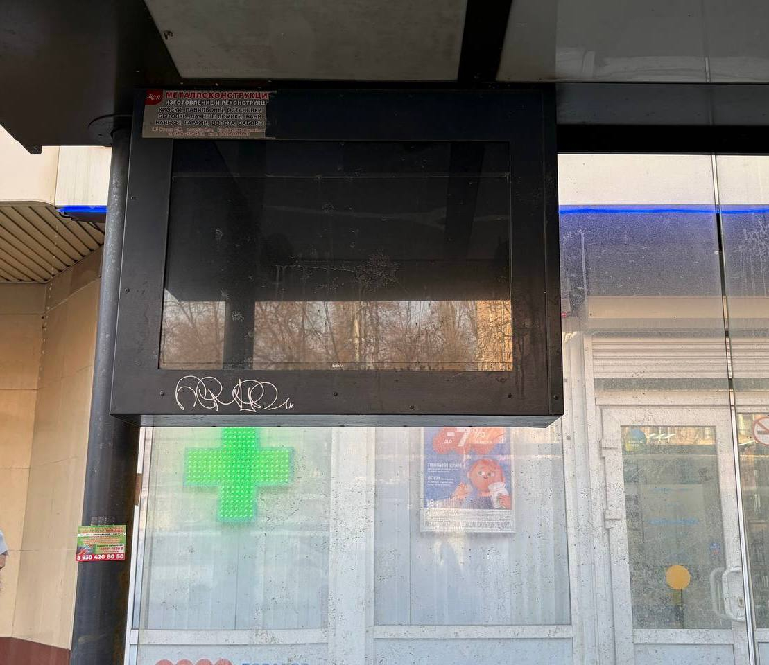 Интересно, что даже когда табло работает, информация иногда обновляется с задержками или вместо расписания крутят рекламу, как, например, на остановке «Первомайский сад». А на «Театре кукол» табло не работало уже в 2024 году.