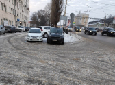 Между вокзалом и Политехом есть даже заледеневшая автодорога, куда поочереди с «врум-врумом» забуксовывают машины.