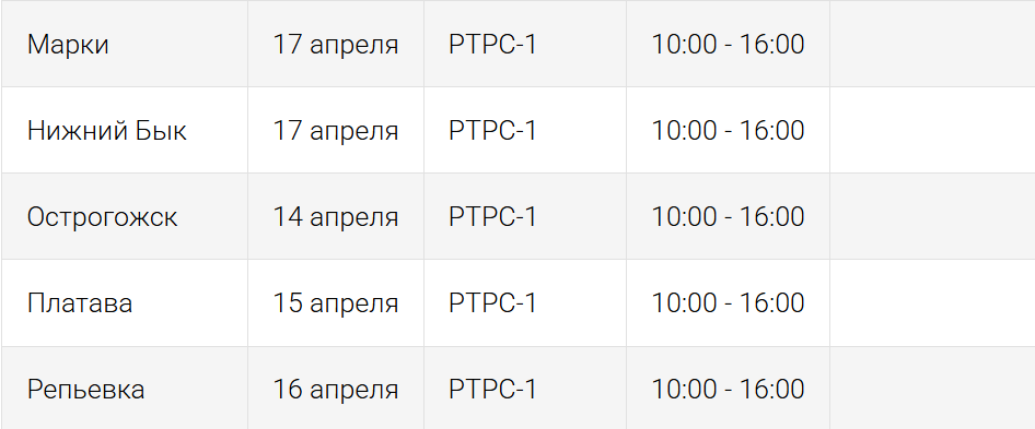 Жителей Воронежской области предупредили о проведении профилактических плановых работ, за которыми последуют отключение теле- и радиовещания. Перерыв в эфире коснется жителей 10 населенных пунктов, в Волоконовке и Евдаково эфир отключат дважды. В среднем отключения будут длится по шесть часов, но, в зависимости от поселения ситуация может варьироваться, поэтому прикладываем таблицу с точным расписанием от Воронежского ОРТПЦ.