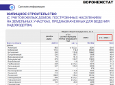 В семерку если не лидеров, то муниципалитетов, где был отмечен рост жилищного строительства, вошли (по алфавиту): сельские районы – Бобровский, Кантемировский , Новоусманский, Павловский, Россошанский и Семилукский, а также городской округ Воронеж.