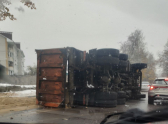 Перевернувшийся КамАЗ с песком спровоцировал пробку в Воронеже