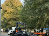 На улице Свободы очевидцы заметили серьезно поврежденный автомобиль BMW, который был в процессе эвакуации с места происшествия.