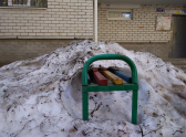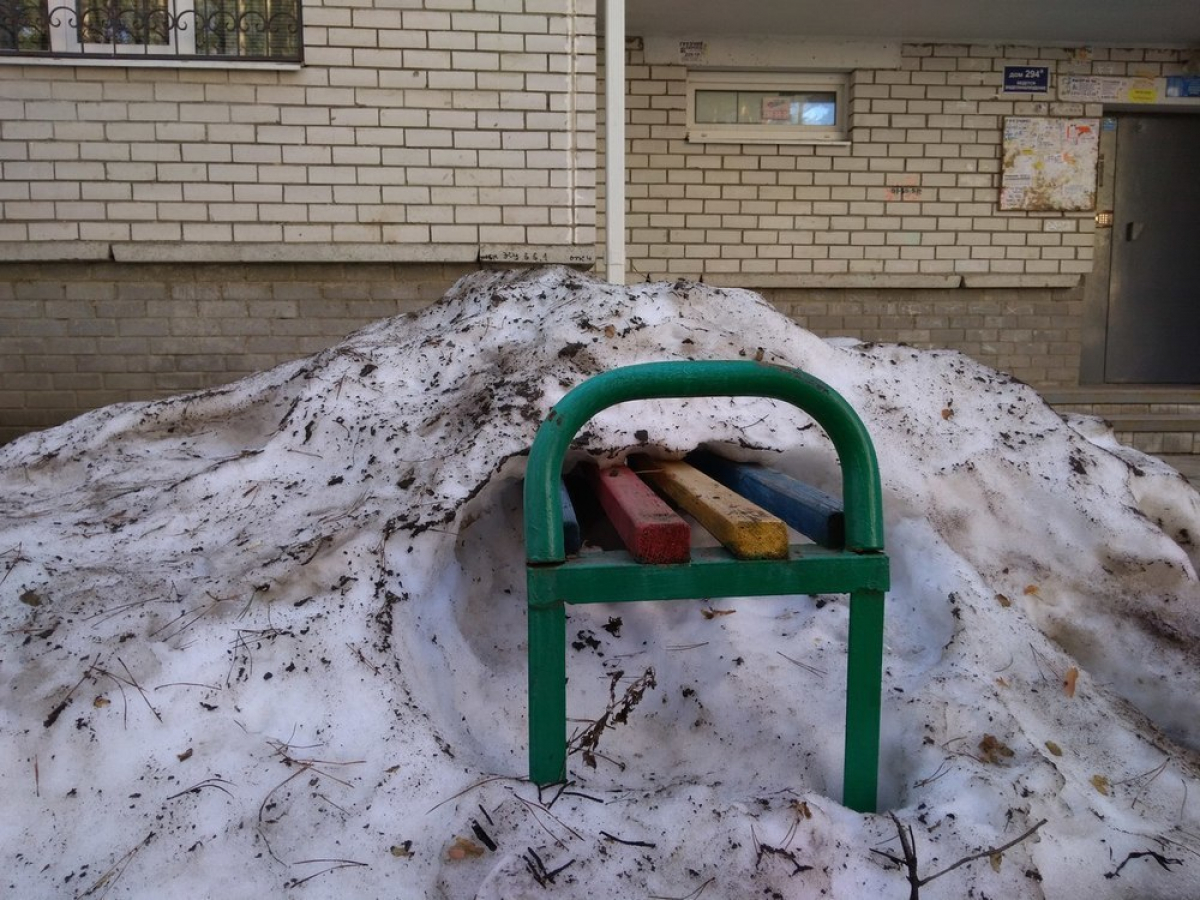 На фото видно, что сугроб, засыпавший любимицу уставших путников, начал подтаивать, оголив один край скамьи. Пользователь Кирилл Плиткин намекнул, что снежная насыпь защищает двор от бабушек – любительниц посплетничать около подъездов.