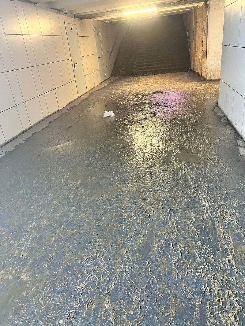 – Здравствуйте, «Блокнот», опубликуйте пожалуйста. Вот такой подземный переход на Волгоградской. Даже в плюсовую температуру люди падают и ломают ноги. Когда минусовая – там настоящий каток. Чтобы не ломать ноги, люди, рискуя жизнью и здоровьем, перебегают дорогу через четырехполоску. Зачем они брались за ремонт и сдавали в концессию, если до было лучше? – задается вопросом читательница.