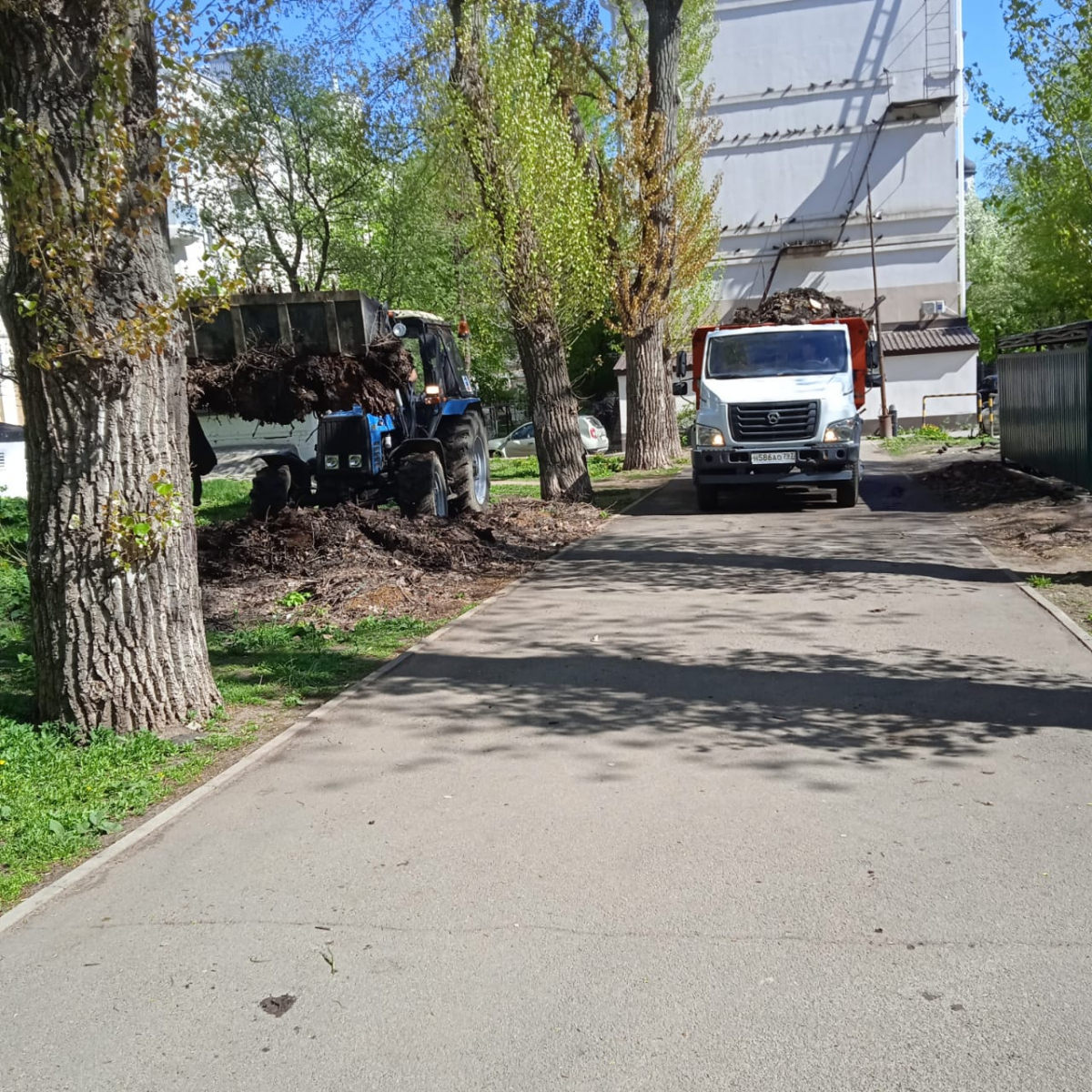 Из-за того, что субботник накануне прошел в большом количестве дворов, вся наша спецтехника была задействована. Дополнительные машины мы заказывали у сторонних организаций, но они не все были доступны, а с 1 по 3 мая организации - отдыхали. Поэтому весь мусор, который не получилось вывезти сразу после субботников, мы убираем в эти дни: 4, 5, 6 мая.
