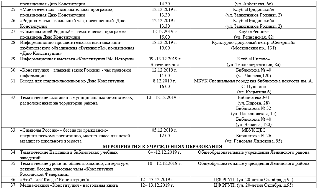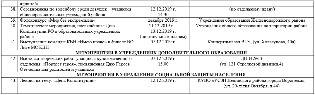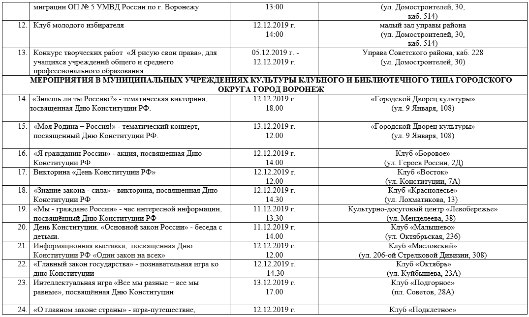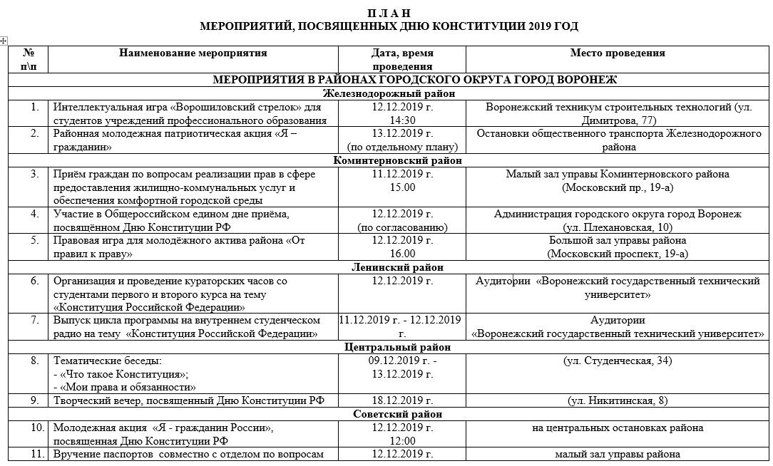План мероприятий на День Конституции в Воронеже в 2019 году