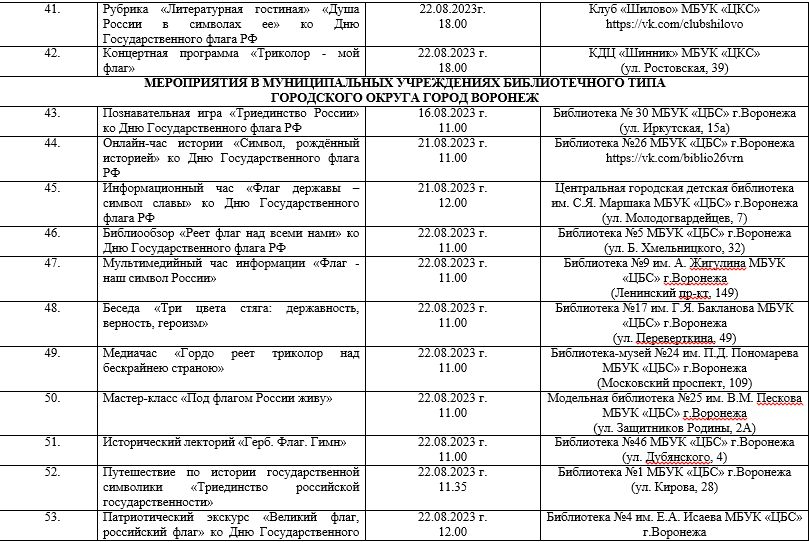 План мероприятий в честь Дня государственного флага России в Воронеже