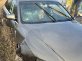 Машину занесло на мокрой дороге, и она опрокинулась в кювет.