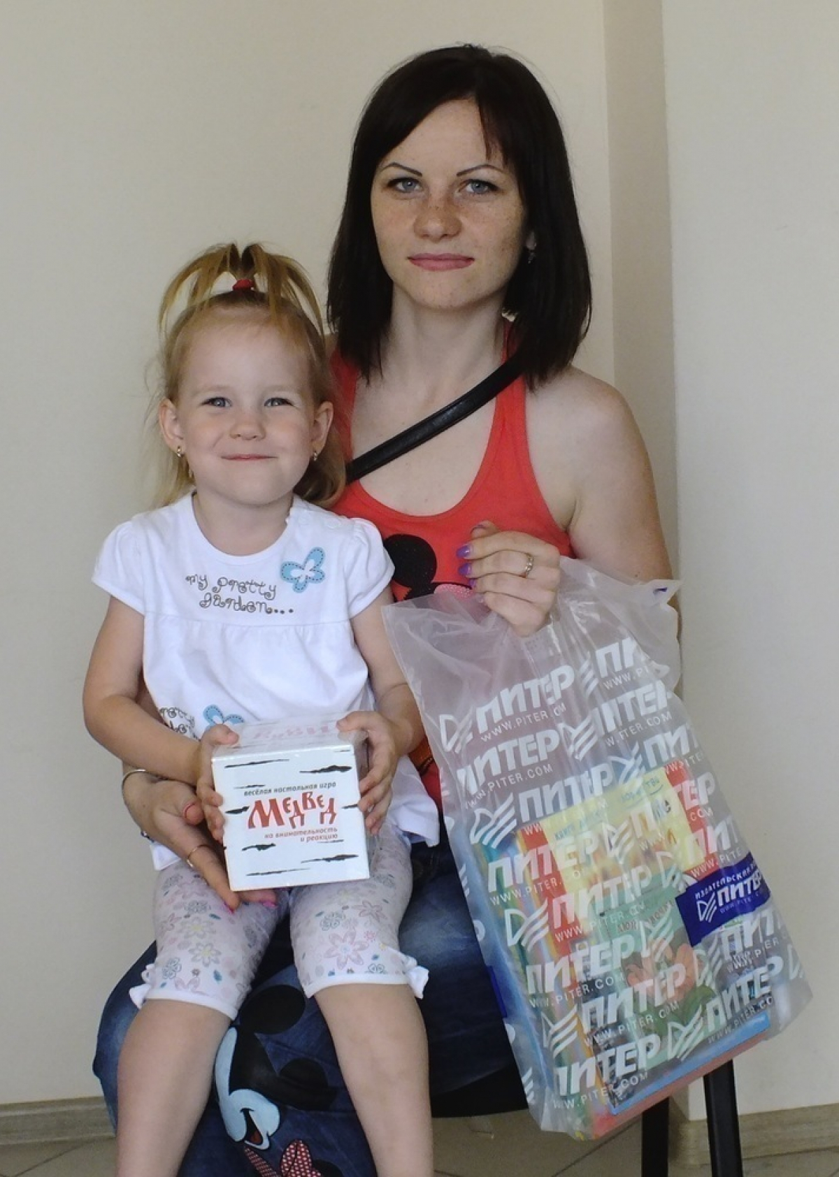 За свою улыбку Арсений получил игру от спонсора конкурса магазина настольных игр «Мосигра» - «Экивоки», а Полине вручили игру «Медвед».