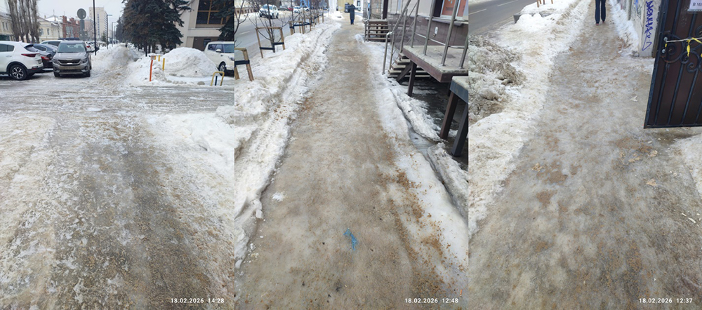 Непонятно, какие там ошибки первой волны гололеда разбирались с губернатором, но каких-то улучшений в зимней уборке тротуаров замечено не было. Понятно, что резко нарастить количество техники и дворников за месяц сложно, но подходы-то поменять можно было? Зачем сыпать бесполезную сейчас и даже вредную соль? Почему нельзя сыпать больше песка – это не настолько дорогой ресурс? Не хватает на весь тротуар, насыпать хотя бы метровую дорожку, чтобы люди могли пройти. Почему не сделано?