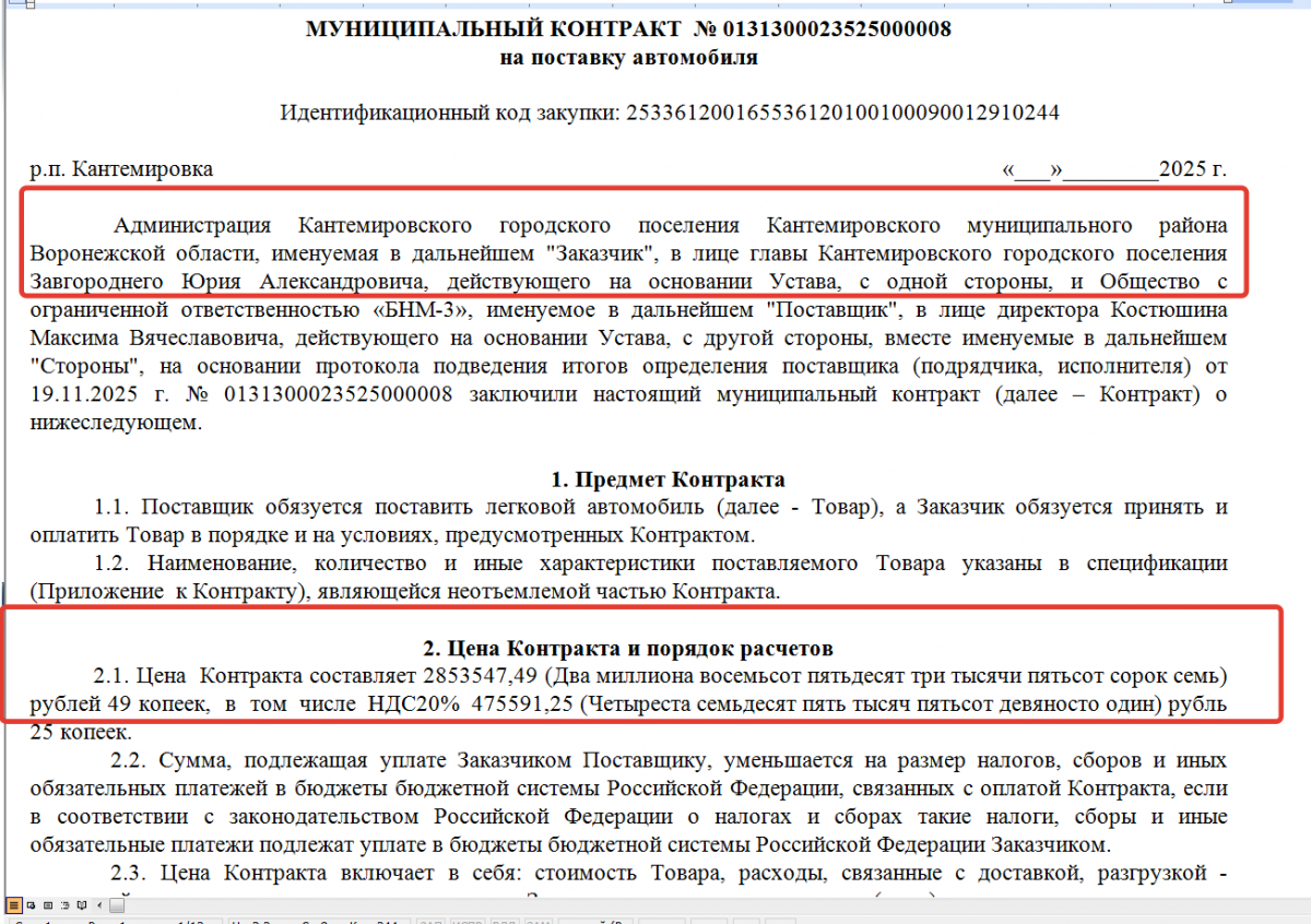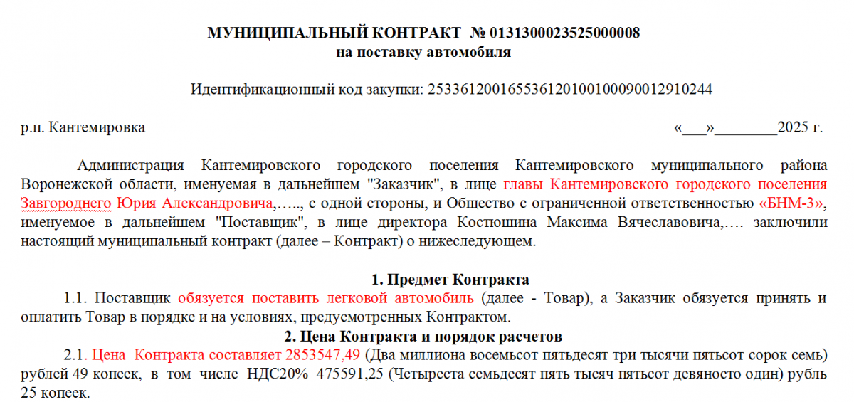 скриншот из муниципального контракта