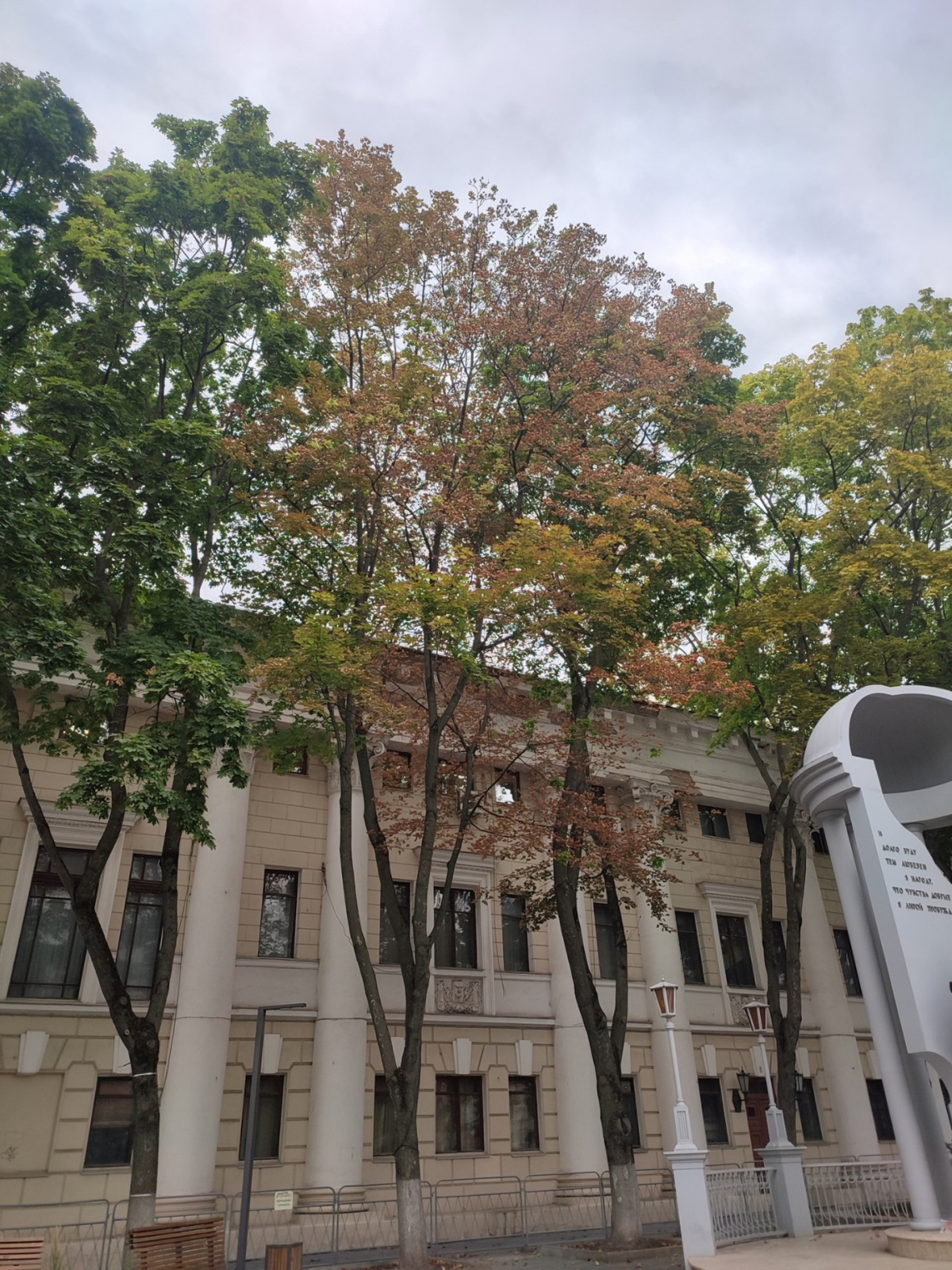 Но вот скверы и парки, по идее, это все-таки более защищенные территории: там больше грунта, а значит корневая система работает лучше, ремонты и уборочная техника не так сильно повреждают деревья, потому что они растут на удалении от плитки. За деревьями следит управление экологии (в отличие от тех, что вдоль улиц, там следит управа).Однако деградация нашего зеленого фонда и отношение к нему достигли такого уровня, что деревья начинают сохнуть уже и в скверах, и парках! Причем, даже не на окраине города, а в самом центре – прямо напротив областного правительства, в Пушкинском сквере! Сквер ценен даже не своим расположением, а прекрасным сочетанием красивого классического фасада оперного театра и высокими старинными деревьями – этот вид достоин любой европейской столицы!