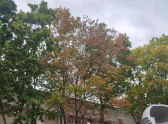 А вот большие старинные деревья - главная ценность этого сквера, да и, наверное, всего города, как засыхали все лето, так и засыхают.