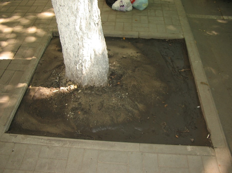 Если бы деревья поливали как нужно, то даже в самую большую жару почва была бы влажная как минимум до обеда, как это было, например, когда поливали улицу Комиссаржевской.
