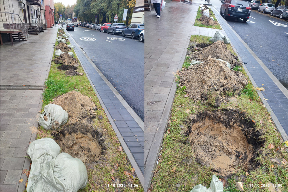 Может быть их не будут сажать в песок, цемент и строительный мусор? Посмотрите на улицу Пушкинскую – там выкопали ямы для новых деревьев. Видно, что после ремонта подрядчик не убрал строительный мусор, а просто присыпал его слоем земли – туда и будут сажать деревья.