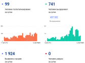 За последние сутки ни один пациент с коронавирусом не умер. Выздоровел 741 зараженный. Госпитализация потребовалась 99 больным.
