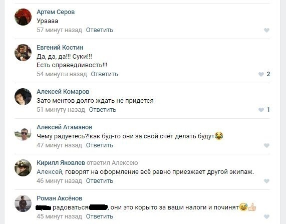 В комментариях некоторые пользователи по непонятным причинам стали злорадствовать над этим происшествием. Однако им справедливо оппонировали другие участники сообщества, говоря, что ремонт автомобиля полиция проведет за счет налогов граждан.