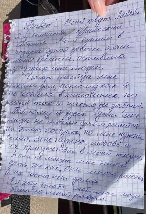 Рядом с животным лежала записка, написанная от его имени.