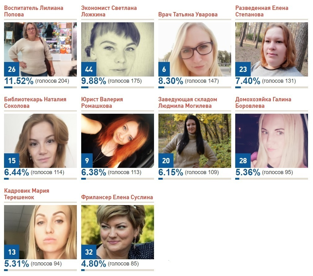 По итогам народного голосования определились 10 полуфиналисток конкурса. Ими стали: