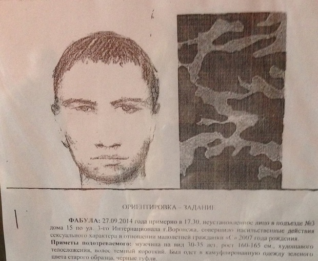 Преступник напал на семилетнюю девочку в подъезде многоэтажного дома на улице 3-ого Интернационала 27 сентября около 17 часов 30 минут. После сексуального насилия он сбежал. Вскоре сотрудники правоохранительных органов составили фоторобот злоумышленника. Приметы: рост 160-165 см, возраст - 30-35 лет, темные волосы, был одет в камуфлированную одежду и черные туфли. Полиция просит всех, кто что-либо знает о местонахождении преступника, звонить по телефону 02. По факту случившегося возбуждено уголовное дело.