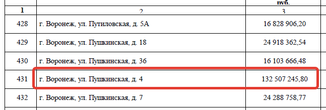 Что касается Пушкинской, 4, то почти 72 млн пойдет на ремонт внутридомовых инженерных сетей; 8 млн – водоотведение, 40,9 млн – теплоснабжение, 10,2 млн – холодное водоснабжение, 10,8 млн – электроснабжение; ремонт подвалов – 16,5 млн (это 477 кв м) ; ремонт фасада – 42,5 млн; Всего строительно-монтажные работы (СМР) 129 млн, разработка проектной документации – почти 560 тыс. , 2,8 млн – проведение строительного контроля.