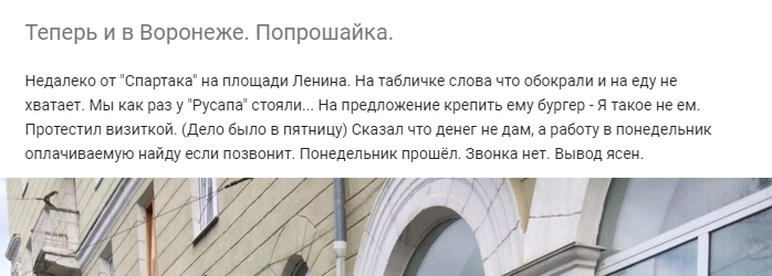 Из чего воронежец сделал вывод, что молодой человек обманом выманивает деньги у сердобольных прохожих.