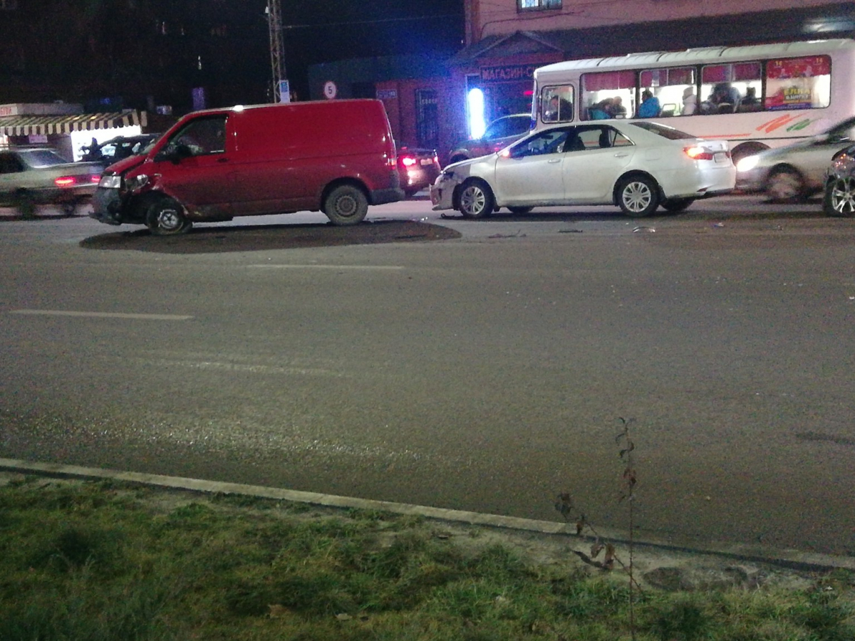 Что именно стало причиной столкновения — предстоит установить полицейским. По словам очевидцев, после аварии движение по проспекту Труда было осложнено, образовалась пробка. Автомобили получили различные повреждения. Например, у красного минивэна оказался разбит перед, у других — зад.