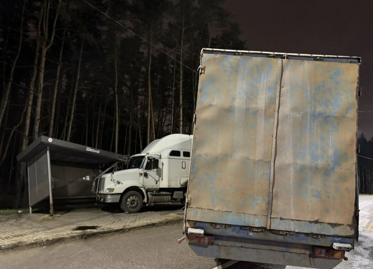 Вчера, 19 апреля, около 20:40, водитель грузового автомобиля "Вольво" не справился с управлением и въехал в остановку "Школа".