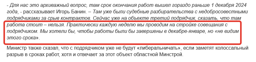 скриншот из публикации "Блокнота", по словам министра, чиновники практически каждую неделю проводили совещания с подрядчиком. Однако ни одного акта выполненных работ - так и не было подписано заказчиком. О чем тогда можно было совещаться?