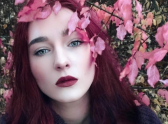 Жительница Воронежа предстала перед интернет-пользователями с необычным макияжем, который прекрасно сочетается с окружающими ее цветами. Красные волосы и губы, розоватые румяна гармонируют с нежными лепестками около ее лица.