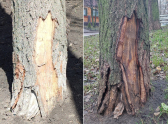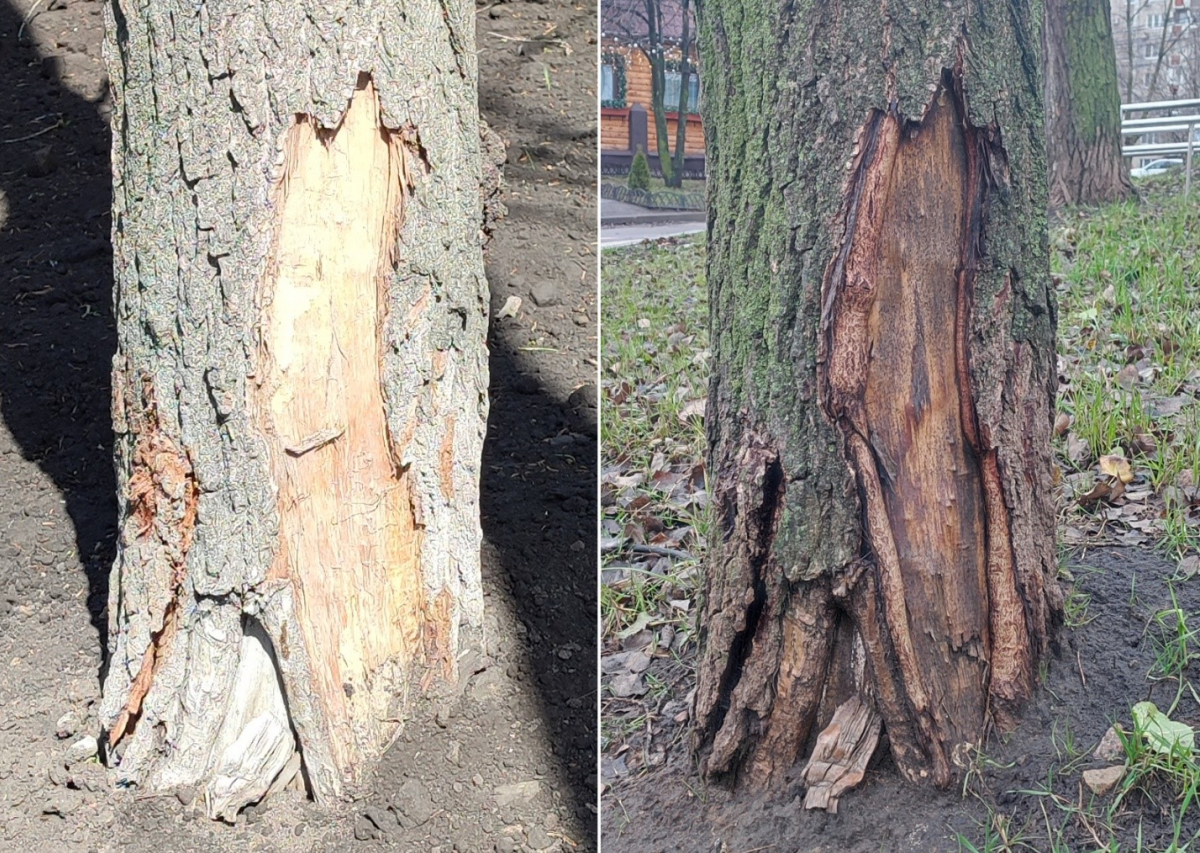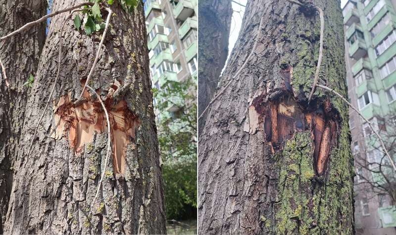 В дальнейшем эти открытые раны будут разрушать дерево, и оно станет аварийным или засохнет.