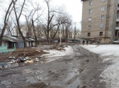 По словам местных жителей, к зданию невозможно подойти вообще. Асфальта нет, пешеходных дорожек тоже нет.