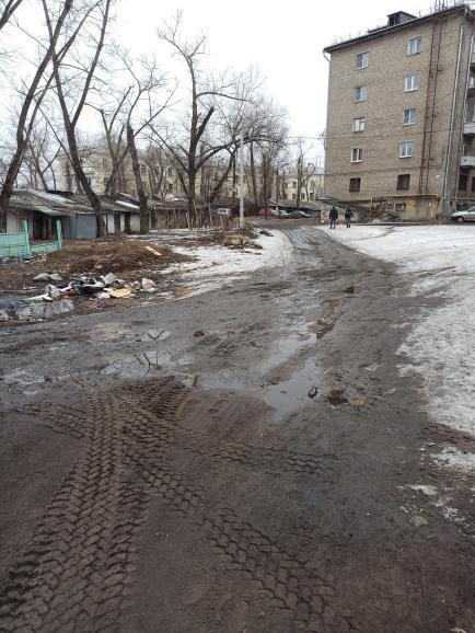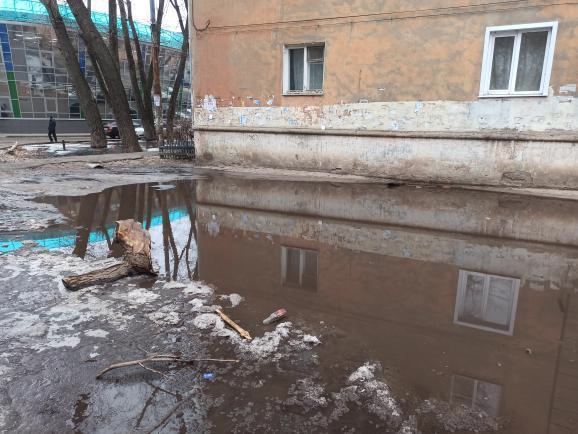 Двор в Железнодорожном районе пришел в такое состояние, что его трудно отличить от болота.