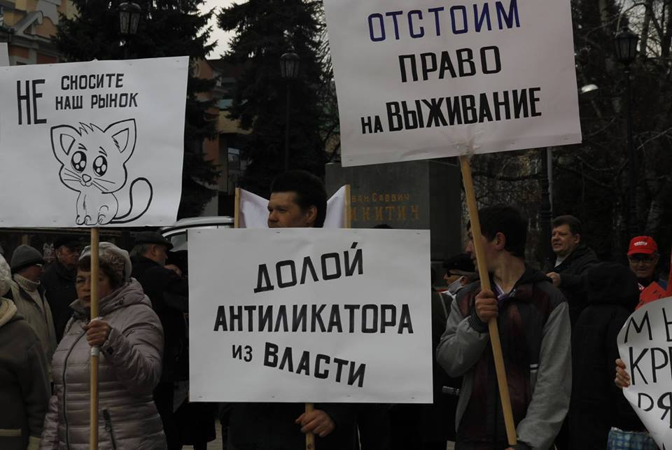 - В резолюции от 18 октября были выдвинуты следующие требования: прекратить снос пяти мини-рынков города, отказаться от концессии подземного перехода возле Цирка, отменить поправки, внесенные в положение «О порядке размещения НТО…», которые носят незаконный характер. В официальном ответе администрации городского округа город Воронеж на резолюцию следует, что администрация не способна на конструктивный диалог с малым бизнесом.