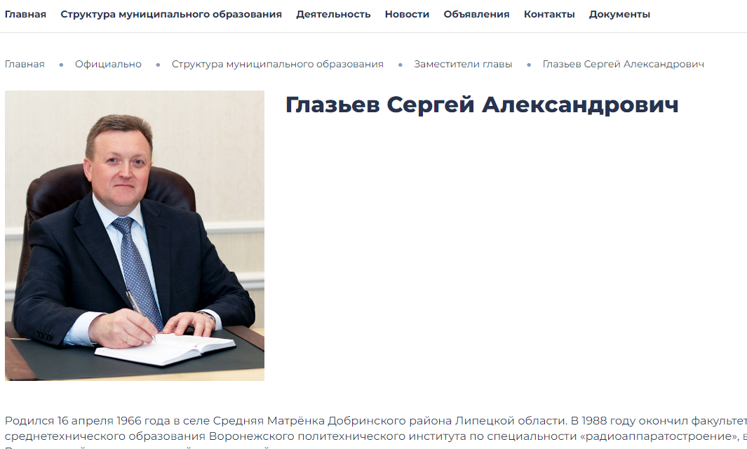 Ранее он несколько лет осуществлял контроль за этой работой в мэрии. Кто теперь вместо Глазьева будет отвечать за финансовые потоки при приеме и облуживание российских, иностранных делегаций и отдельных лиц, - пока не сообщается.