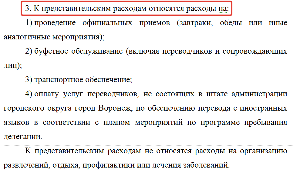В документах мэрии представительские расходы расшифровываются следующим образом: