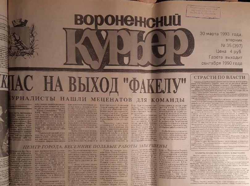 - Нынешней весной руководство клуба вело переговоры с ТНП – АРМИ. Однако, как мне показалось, эта солидная фирма поставила заведомо невыполнимое условие перед руководством клуба – передача Центрального стадиона из профсоюзной собственности на баланс задумываемого акционерного общества. Естественно, оттяпать столь лакомый кусок у профсоюзов оказалось делом невыполнимым, и бизнесмены под благовидным предлогом отошли на задний план, - писал в марте 1993 года журналист «Воронежского курьера» Леонид Шифрин.