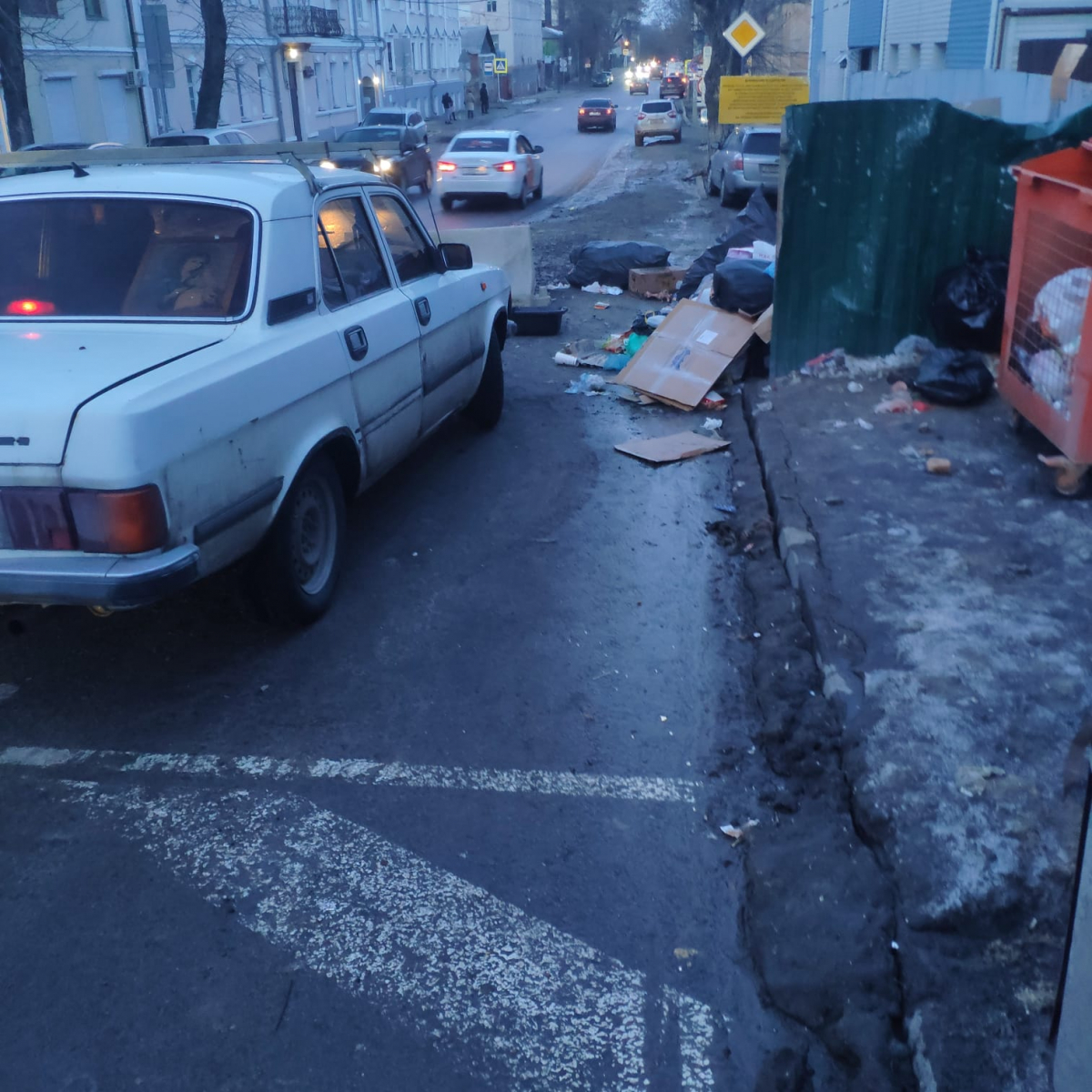 5. Автомобилист Вадим показал платные парковки у дома №87 по улице Сакко и Ванцетти. Там они расположены на контейнерной площадке и мешают выезду со двора.