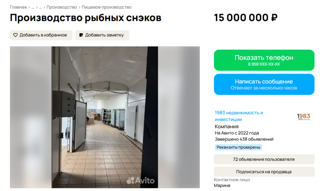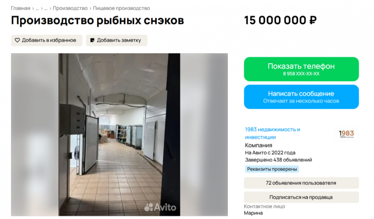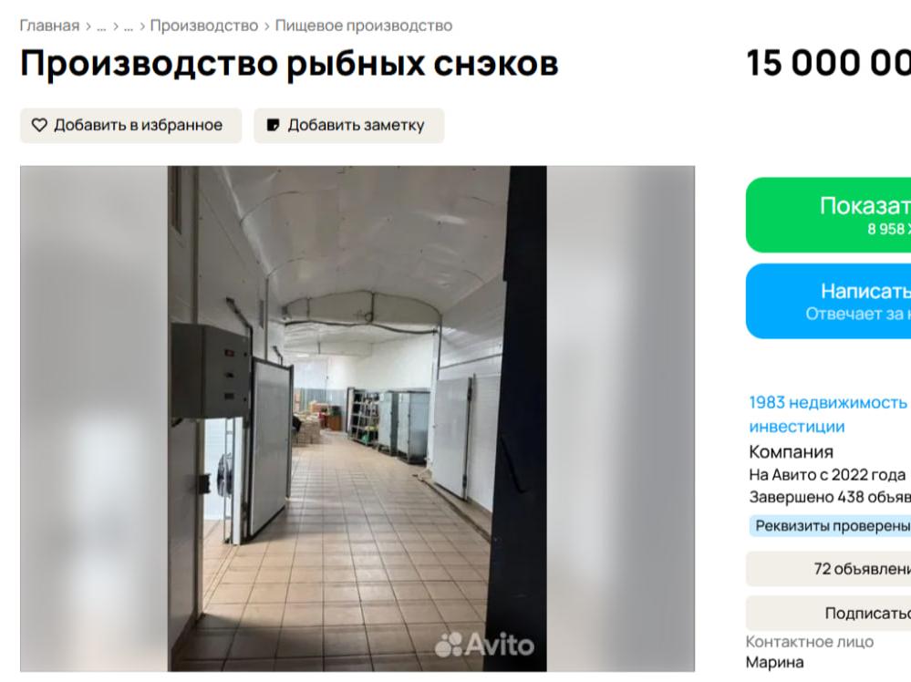 На популярной онлайн-площадке «Авито» появилось необычное предложение для воронежских предпринимателей и инвесторов. За 15 миллионов рублей продается действующее предприятие по производству сушеной и вяленой рыбы, расположенное в Новоусманском районе. Бизнес полностью укомплектован и готов к работе, что позволяет новому владельцу начать деятельность без простоев.