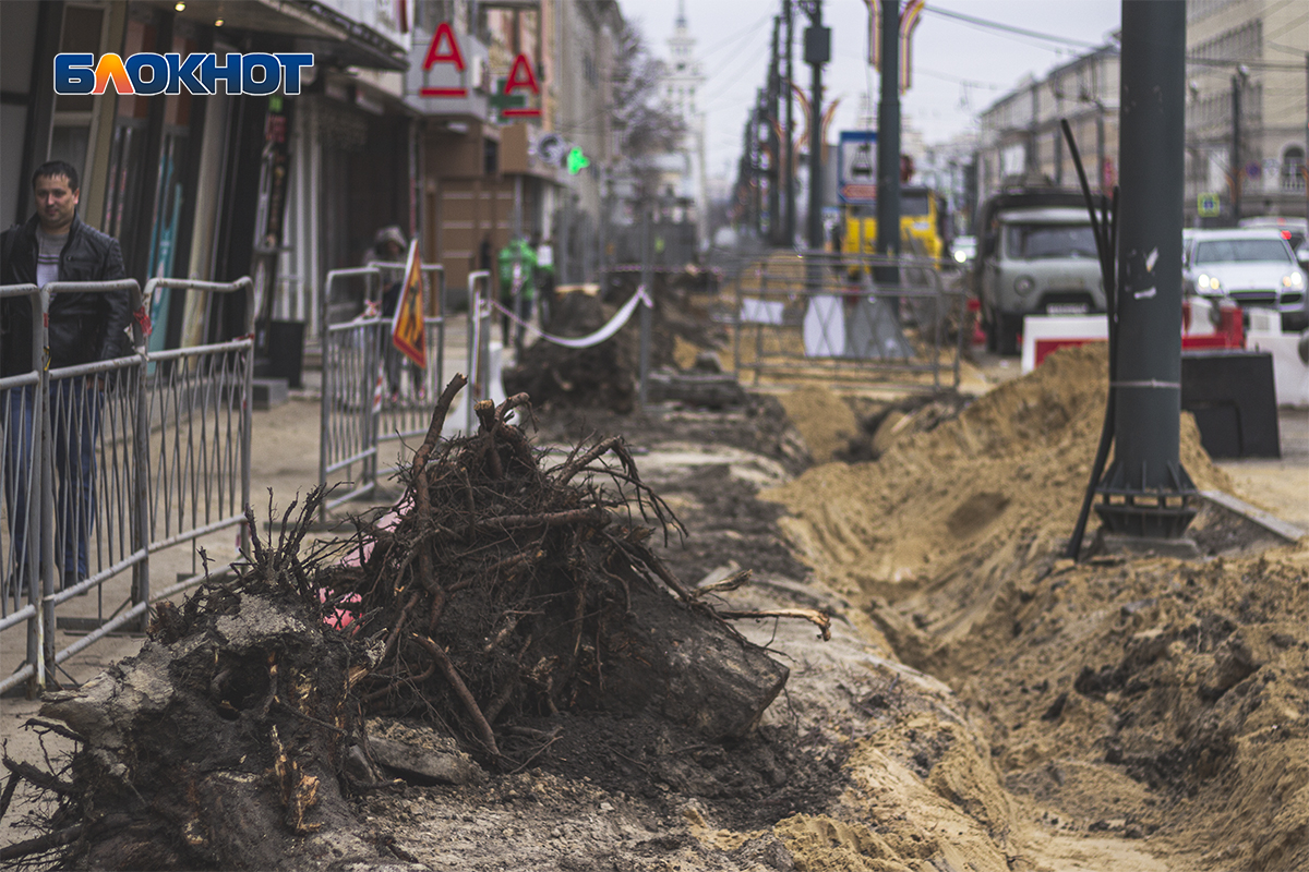Фотограф «Блокнот Воронеж» побывал на проспекте Революции и своими глазами увидел остатки роскоши деревьев и промежуточные работы по реконструкции.