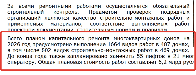 И еще раз спрашивает "Блокнот": зачем надо было повышать до 17 процентов (при ожидаемой властями годовой инфляции в 6 процентов) размер взносов на капремонт МКД в 2026 году, если оператор и министерство не могут грамотно, эффективно воспользоваться такими большими финансовыми потоками?