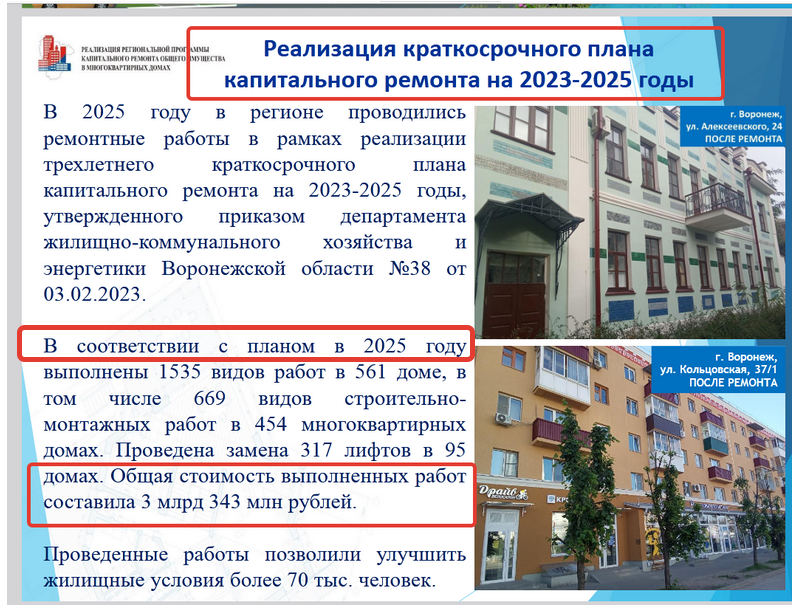 А в опубликованном отчете Фонда за 2025 год говорится про общую стоимость выполненных работ в размере 3 млрд 343 млн рублей.