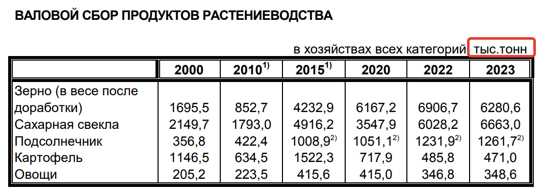 Урожай одной из самых «денежных культур» в растениеводстве – подсолнечника – составил, на 1 ноября, 1 млн 101 тысячу тонн. Это уже примерно на 120 тысяч тонн больше, чем в 2024 году. Разница может вырасти за счет еще неучтенной уборки, которая могла вестись в ноябре. Но до рекордных результатов 2021 – 2023 годов аграрии вряд ли «дотянут», когда они на полях собирали свыше 1,2 млн тонн подсолнечника. И все-таки окончательными результатами по подсолнечнику в текущей уборочной кампании не стоит огорчаться, бывало и хуже. Посмотрите последний скриншот: в 2010-м засушливом и пожарном году, то есть всего 15 лет назад, было собрано подсолнечника почти в 3 раза меньше.