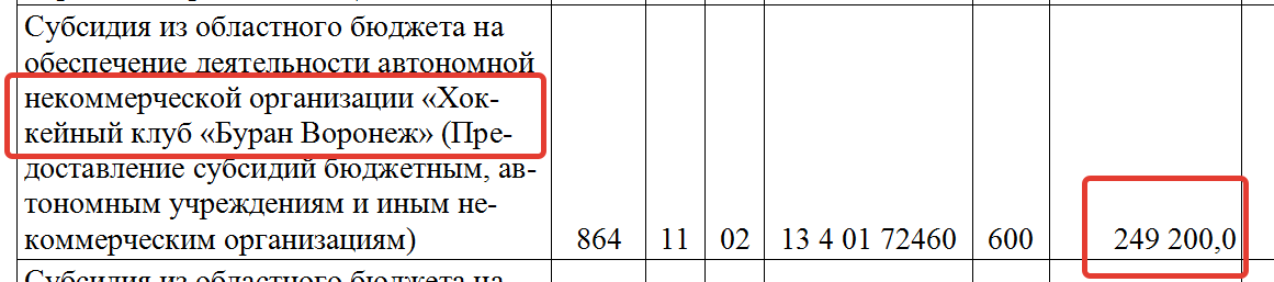 Стоит добавить, что также в законопроекте планируется увеличить размер бюджетной субсидии для Автономной некоммерческой организации «Хоккейный клуб «Буран Воронеж», с 206 млн до 249 млн рублей.