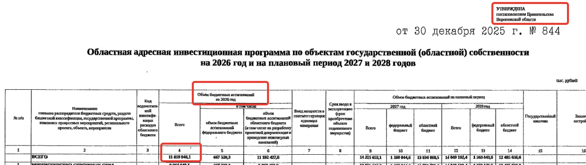 скриншот из декабрьского постановления облправительства по ОАИП на 2025 год и на плановый период 2026 - 2027 гг.